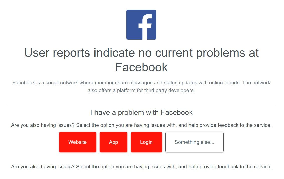 E foarte posibil să nu fii singurul care întâmpină probleme la conectarea la Facebook. Așa că primul lucru pe care îl poți face, dacă aplicația nu merge, este să verifici dacă a fost raportat faptul că a picat Facebook.