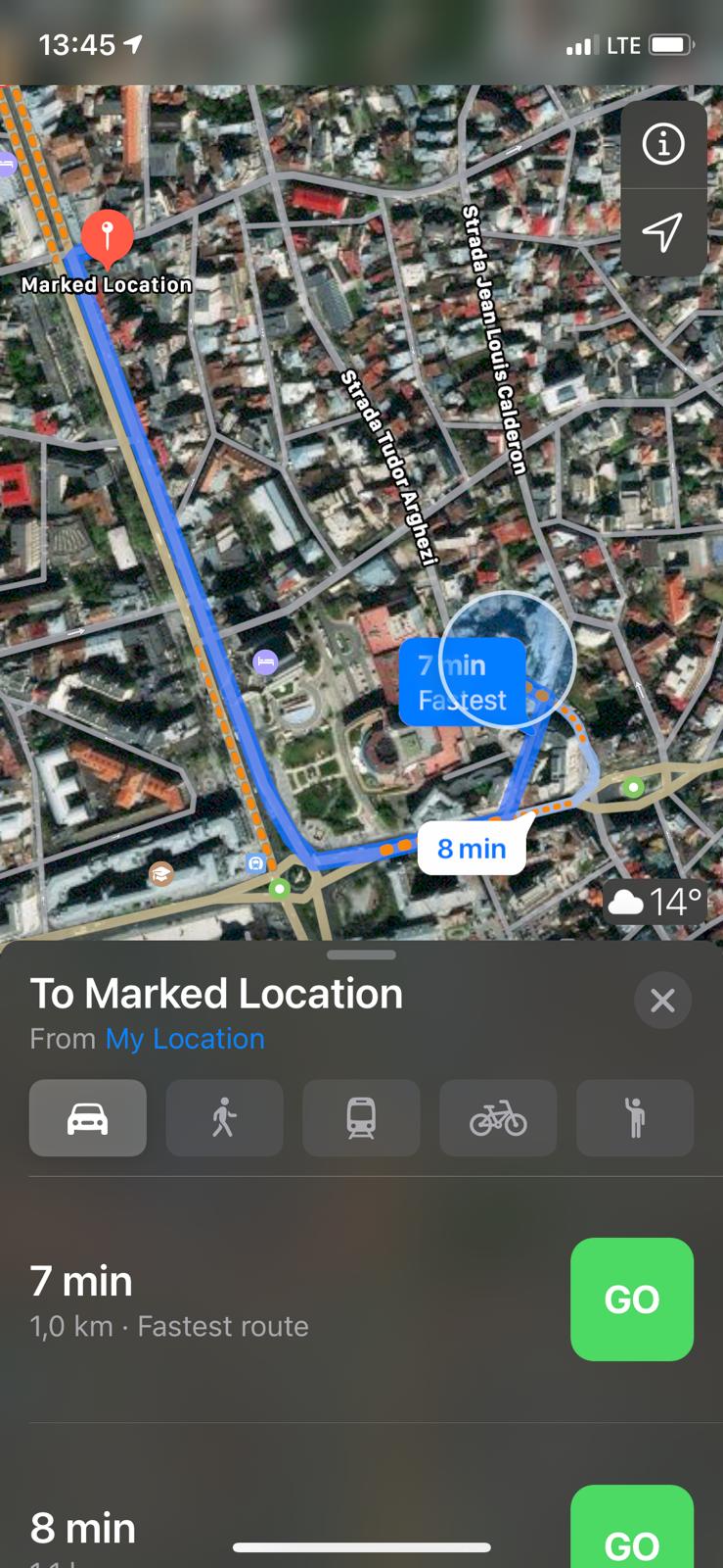La fel de mult s-ar putea să te intereseze și posibilitățile pe care le ai la dispoziție pentru a ajunge la destinație cu un mijloc de transport în comun. Poți obține toate aceste informații selectând simbolul ⓘ imediat ce ai ales adresa ori locația la care vrei să ajungi.