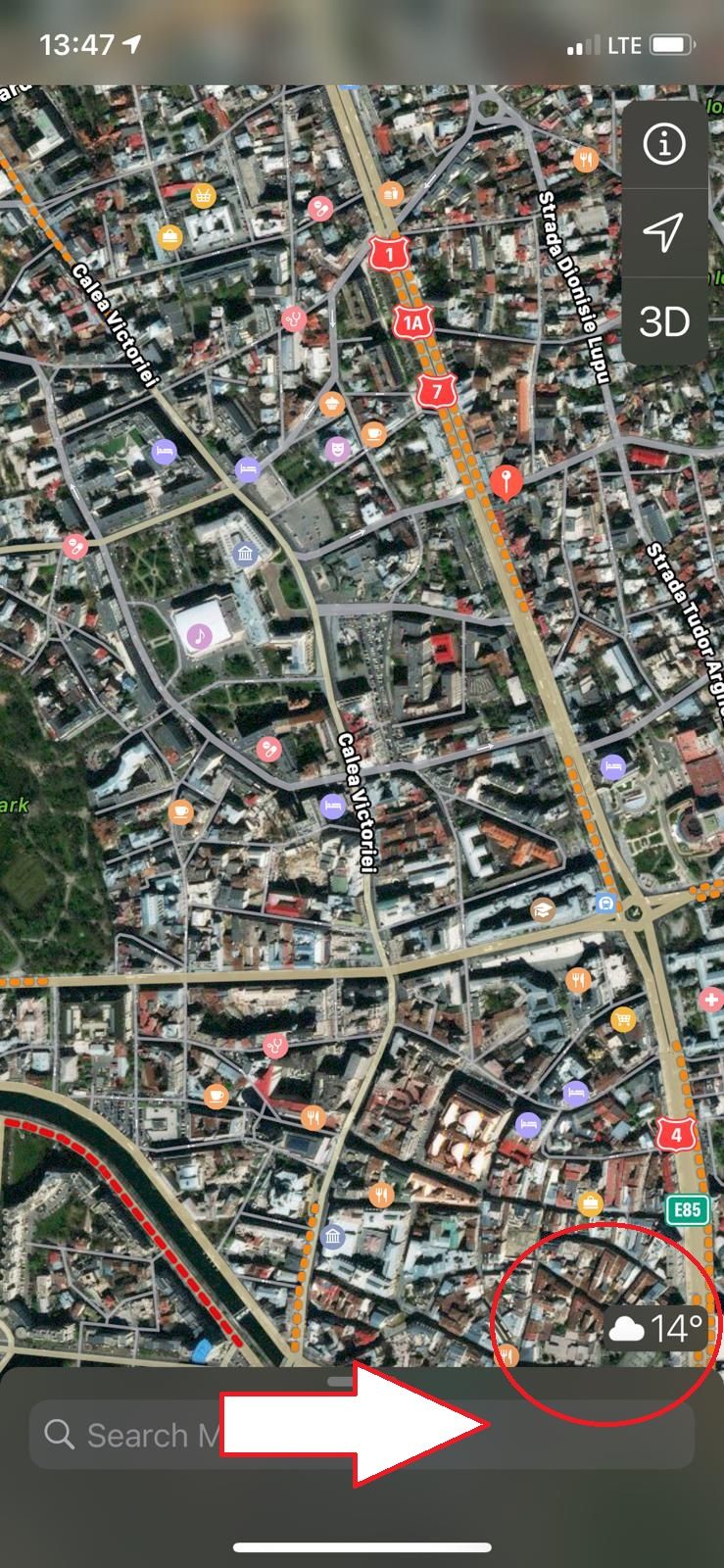O altă funcție, pe care n-o vei regăsi pe celelalte două aplicații de hărți, este cea afișării temperaturii în colțul din dreapta, jos, informație care ți-ar putea fi utilă pentru a ști cu ce fel de vreme urmează să te confrunți, în drumul tău spre destinație.