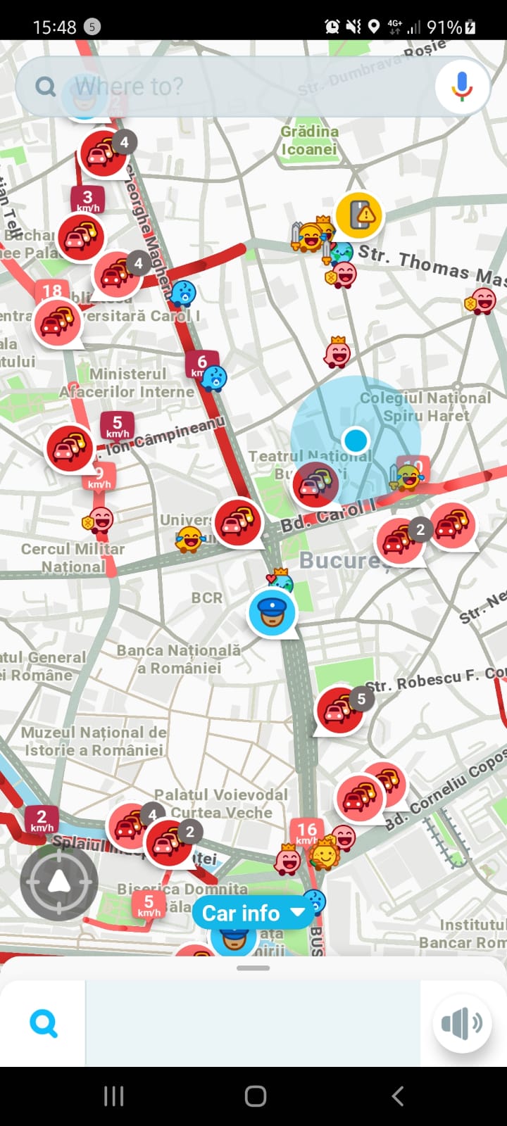 - Waze este cea mai bună aplicație pentru că are update-uri din trafic în timp real, deci te poate conduce pe cele mai puțin aglomerate artere.