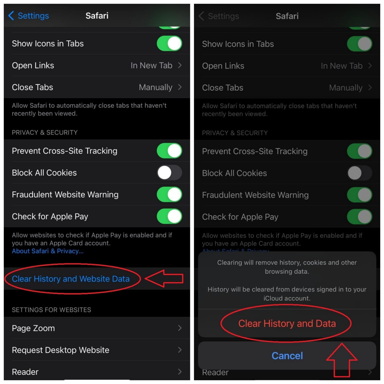 Și memoria cache a browserului pe care îl folosești va îngreuna mult memoria telefonului tău. În cazul Safari, ce va trebui să faci pentru a o curăța va fi să mergi la Settings -> Safari -> Clear History and Website Data -> Clear History and Data.