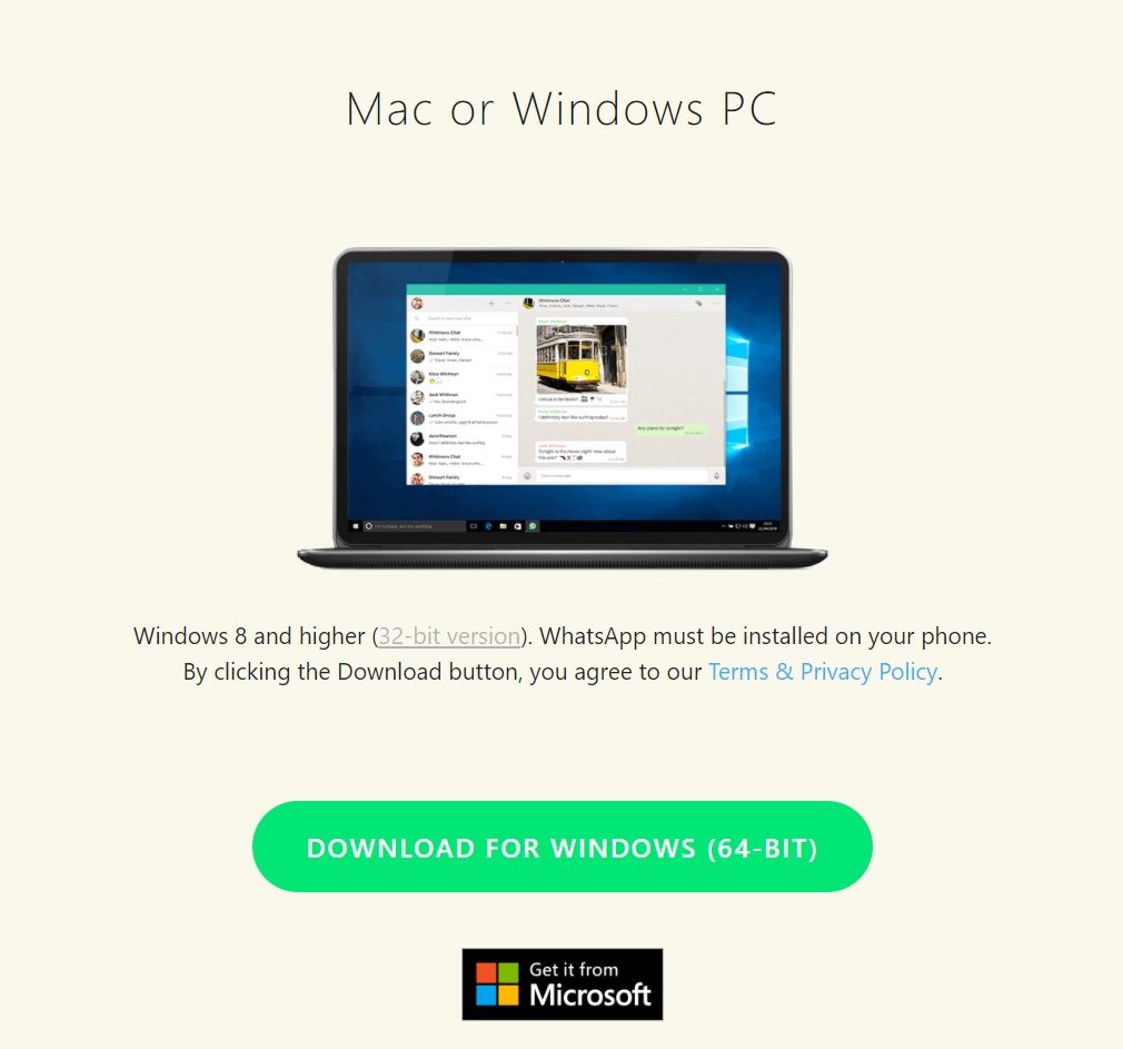 1. Intră pe site-ul oficial WhatsApp și downloadează aplicația pentru PC sau Mac. Poți face asta de aici.