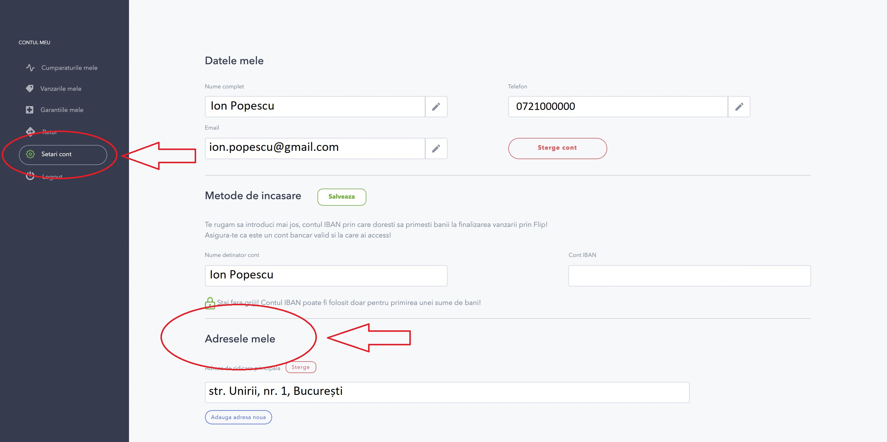 După ce ai creat contul, intră la Setări cont și completează cu atenție numele tău complet, numărul de telefon, adresa de mail și adresa ta fizică. Asta îți va salva secunde prețioase vineri, când dăm drumul campaniei de Black Friday.