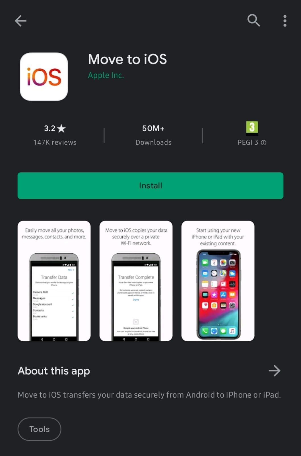 Intră în Google Play și descarcă aplicația Move to iOS, cea prin intermediul căreia vei putea transfera date între Android și iPhone.