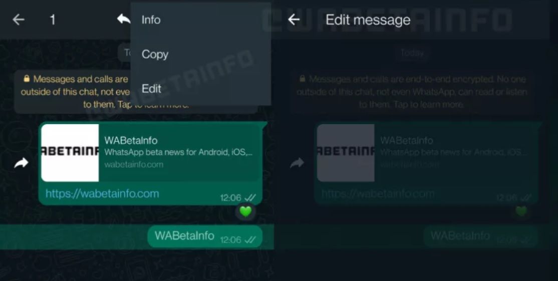 Potrivit WaBetaInfo, WhatsApp va primi un update care va oferi fiecărui utilizator trei opțiuni, dintre care una nou-nouță, cea de editare. Concret, după ce vei trimite un mesaj pe platformă, vei putea afla dacă acesta a fost sau nu citit de către destinatar, prin funcția Info, îl vei putea copia pentru a-l trimite mai departe, cu funcția Copy, sau îl vei putea edita, cu Edit.