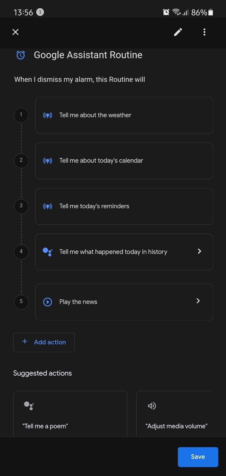 Imediat după ce vei fi oprit alarma, poți alege din aplicație ca Google să-ți spună cum e vremea, ce ai trecut în calendar, ce remindere ți-ai setat pentru ziua respectivă, ce s-a întâmplat în ziua respectivă în istoria lumii și care sunt știrile zilei, în această ordine sau într-o alta pe care o preferi.