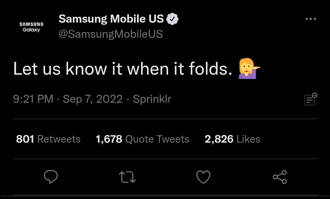 În aceeași idee, Samsung a postat în seara lansării modelelor iPhone 14 și un mesaj amuzant pe contul lor de Twitter: