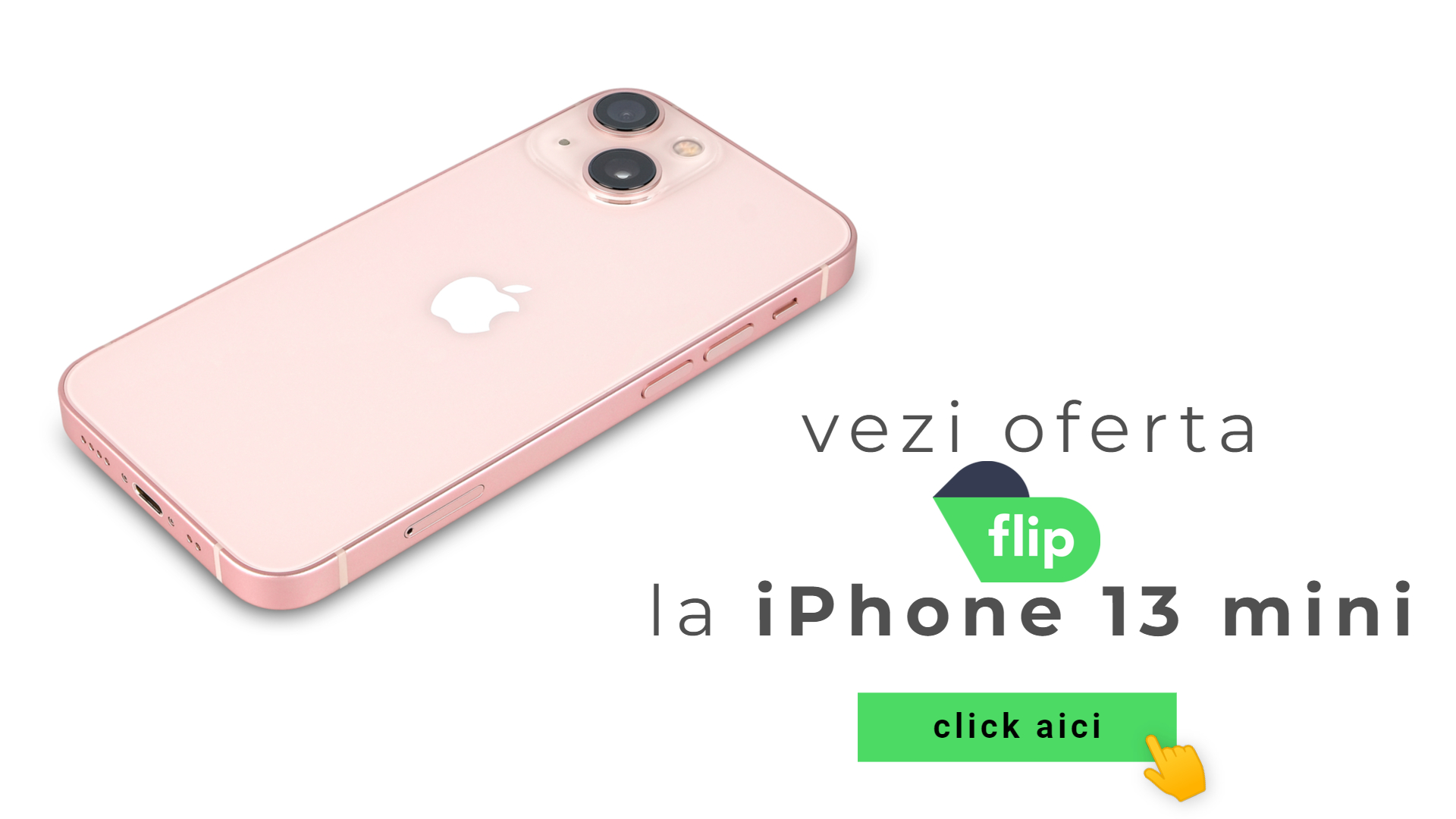 E important să știi că, dintre cele mai noi telefoane de la Apple, iPhone 13 mini este cel mai ieftin, așa că deja ai două motive să-l cumperi. Iar dacă prețul de producător pentru acest model este de 699 de dolari, de la Flip.ro îl poți comanda la prețuri începând de la 3.153 lei, pentru varianta CA NOU (preț valabil la momentul scrierii acestui material).