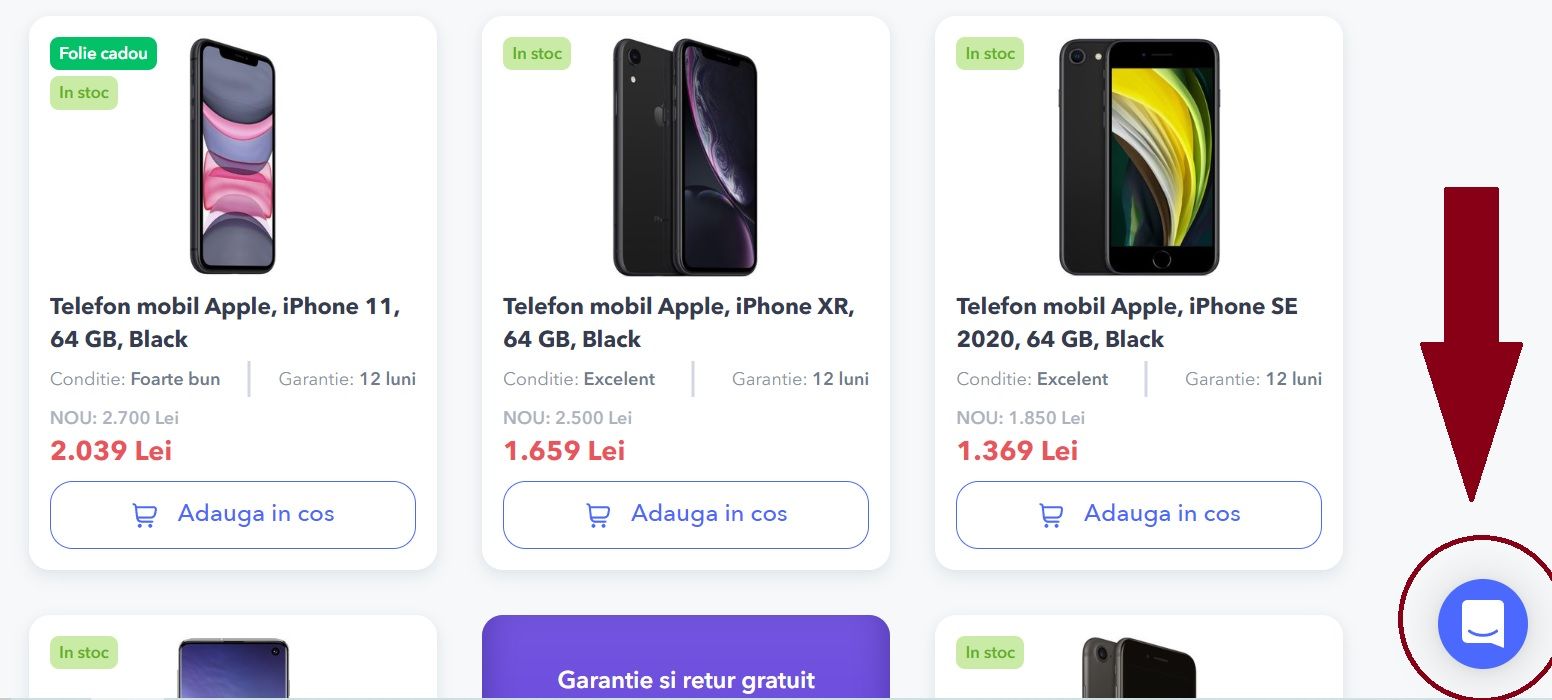 Echipa de Suport e mai mult decât încântată să te asiste în procesul de cumpărare a unui produs în rate de pe Flip, deși lucrurile sunt mai simple decât par la prima vedere. Poți lua legătura imediat cu colegii noștri apăsând pe butonul albastru pe care îl găsești în partea dreaptă, jos, a ecranului: